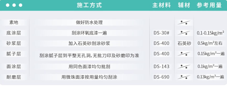 ◆ 微珠地坪适用于防滑的厂房车间、地下 车库、化工、五金、坡道、人行道;机械、造 船厂、汽车修厂、饭堂及厨房,微珠防滑 型地坪施工工艺简单,只需要滚刷一遍 即可,固化后形成高度防滑耐磨地坪。