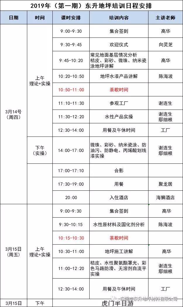 2019年3月14日-15日,东莞市东升地坪材料有限公司开展为期2天的新产品实操与理论培训会。参加培训的人员都是来自各地地坪届精英、地坪工程公司、地坪施工单位、交安设施公司、建筑单位等,来自全国各地50多家企业,参加培训人数高达100多人。