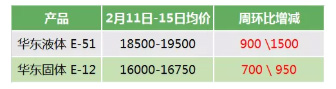 上周,随着部分环氧树脂装置陆续开工,行业开工率大幅提升,截至上周五,尚有零星工厂装置暂未恢复,在双原料成本压力支撑下,新单多高端报盘,低价货源难寻,短期仍存看涨预期,预计本周华东地区液体环氧树脂商谈参考价在19500-20000元/吨,固体环氧树脂商谈参考价在16500-17000元/吨。